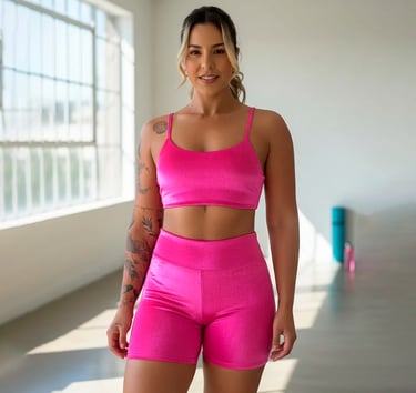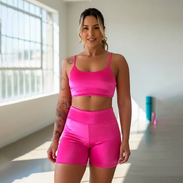Conjunto Fitness Virginia Top Shorts Meia Coxa Cintura Alta